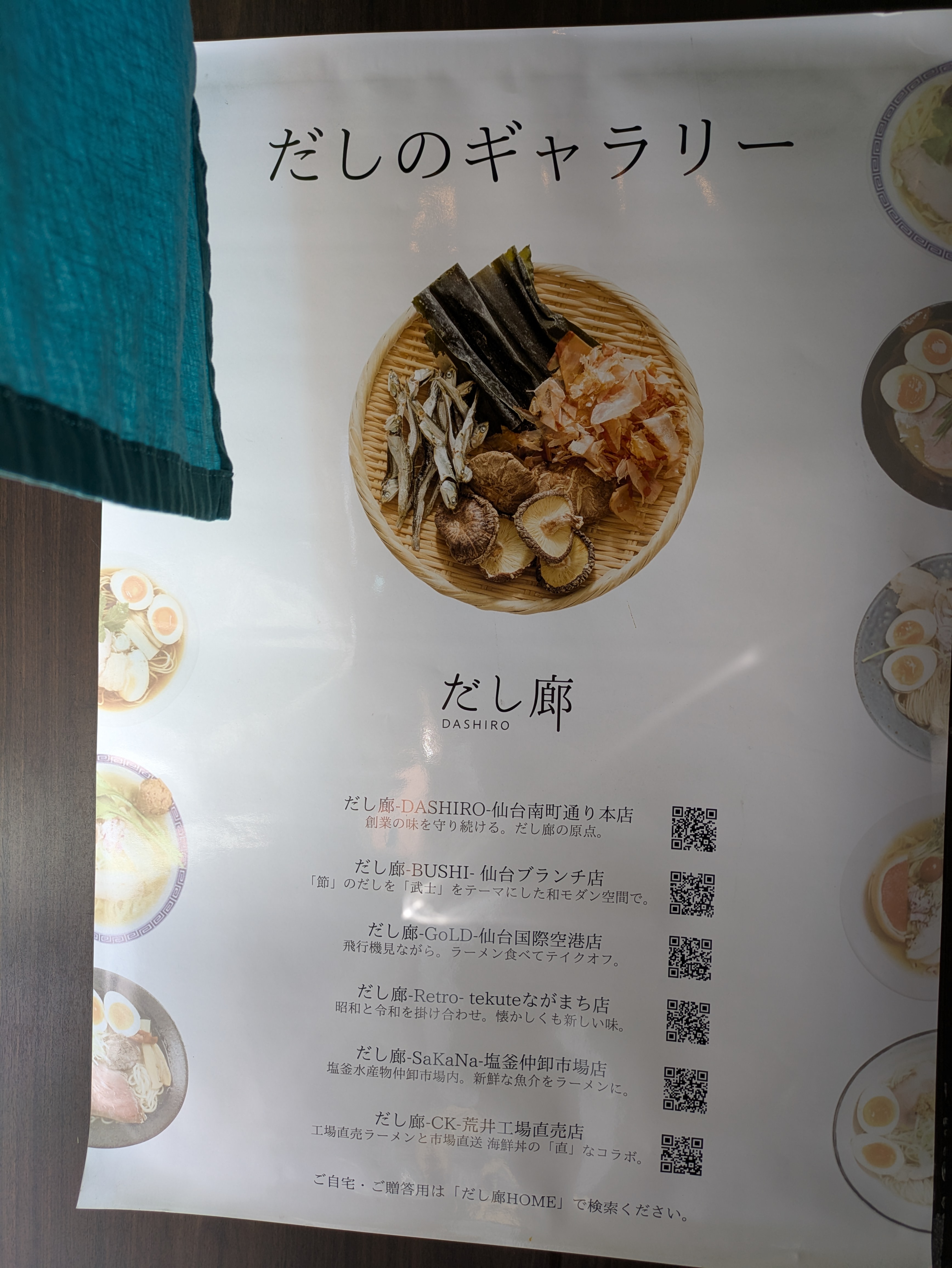 先日の仙台出張にて、だしにこだわったラーメン店「だし廊」に行ってきました。