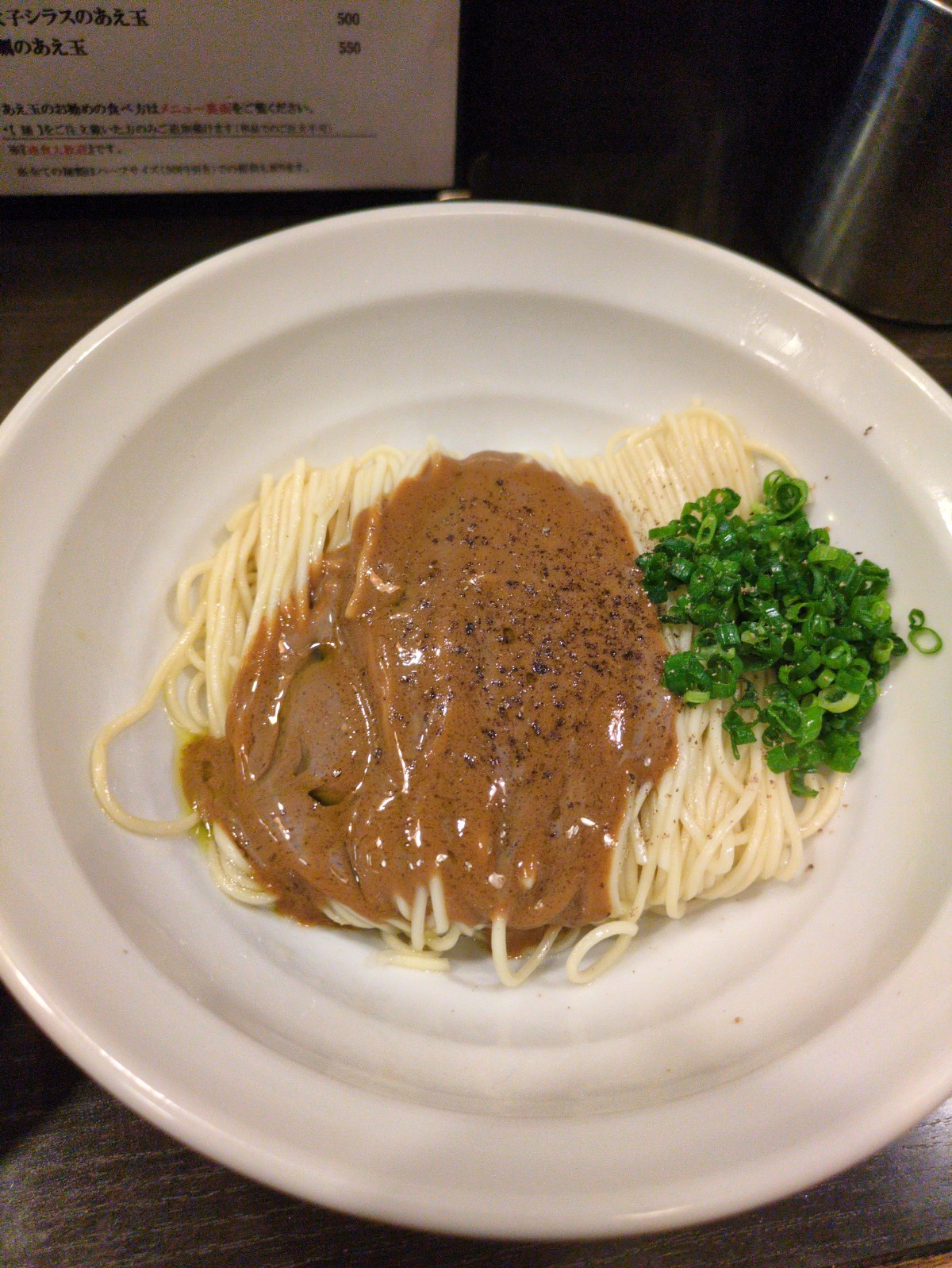 まるでパスタのようなビジュアルの一杯をよく混ぜて、にんにくと牡蠣のうまみをまとった麺を一口。旨い。