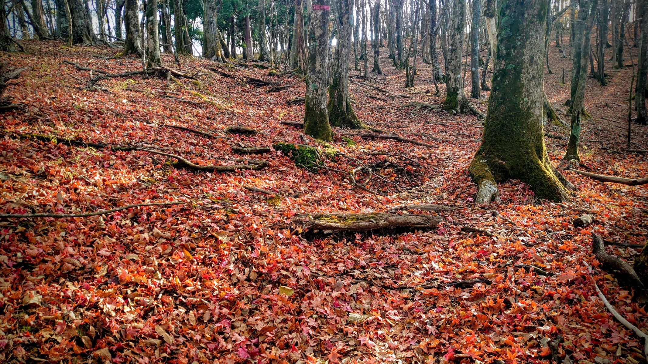今の時期は、落ち葉の絨毯で登山道がとても美しいです。その代わり、道がわかりずらいので遭難する危険もありますので、低山と言えども地図はしっかりと携帯しましょう。