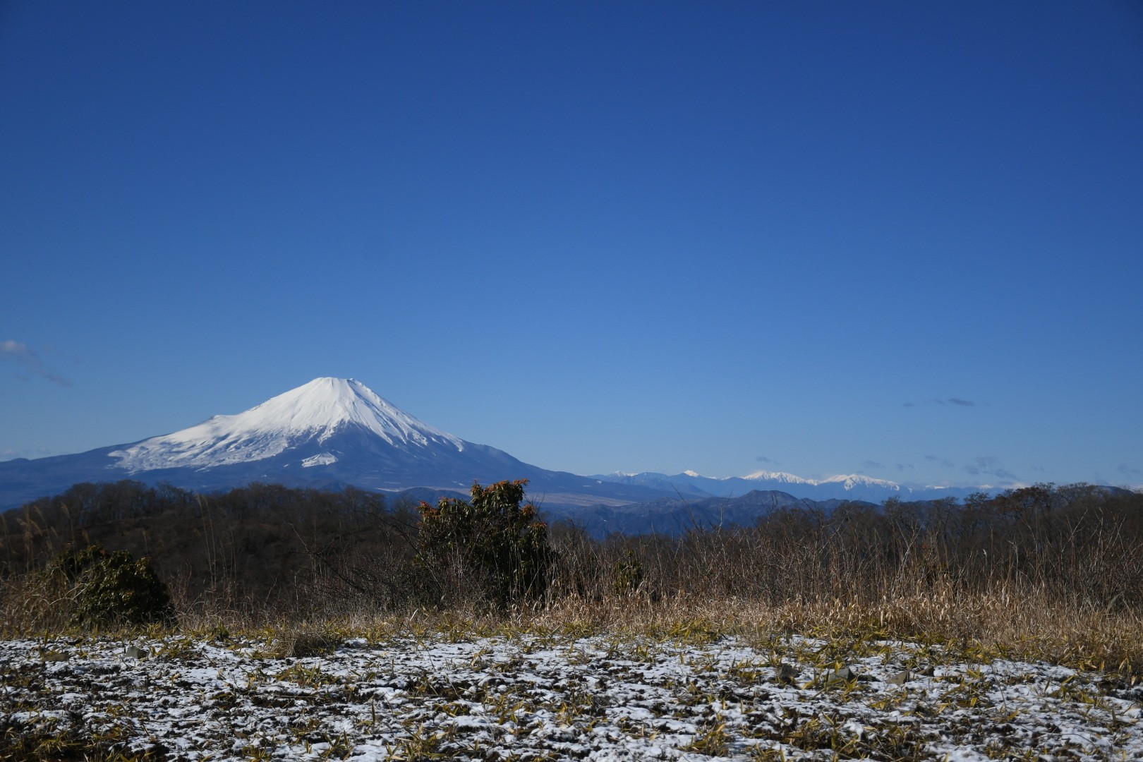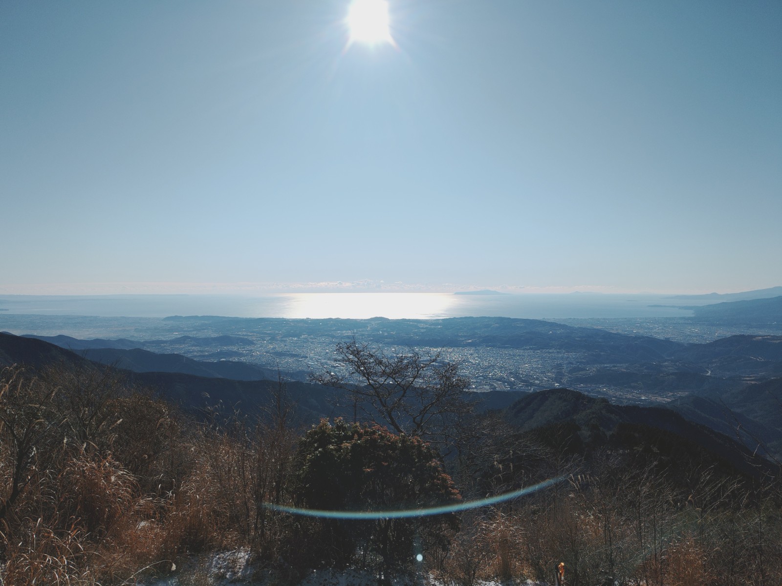 山頂もとても賑わっていました。この日の気温は-2度位。冬の塔ノ岳としては暖かいほうなのですが、風が強く体感-10度位でした。でもこの絶景を眺めていると下山するのが惜しくなります。