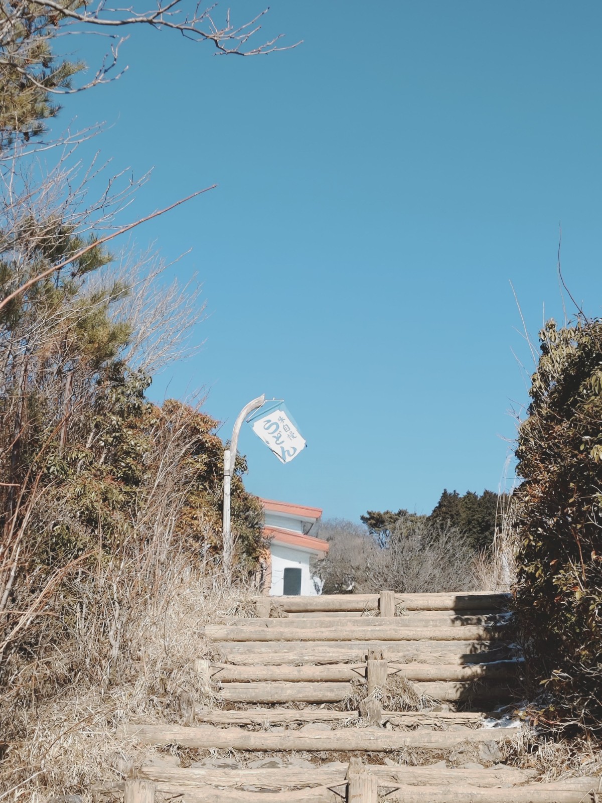 旗は、朝方は「うどん」そして、下山時には「おしるこ」になっていました。ちなみに、夏場は「氷」になります。(小屋のスタッフの方々が、大きな氷をふもとから担いで登ってきてくださっているんですよ)